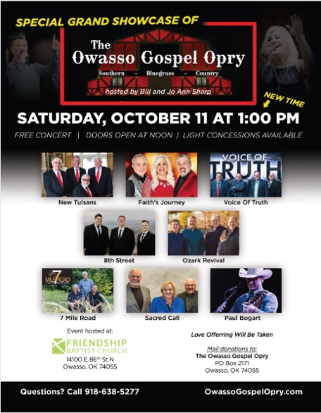 © Copyright 2010-2018, The Owasso Gospel Opry is an Oklahoma Non-Profit Organization - All rights reserved